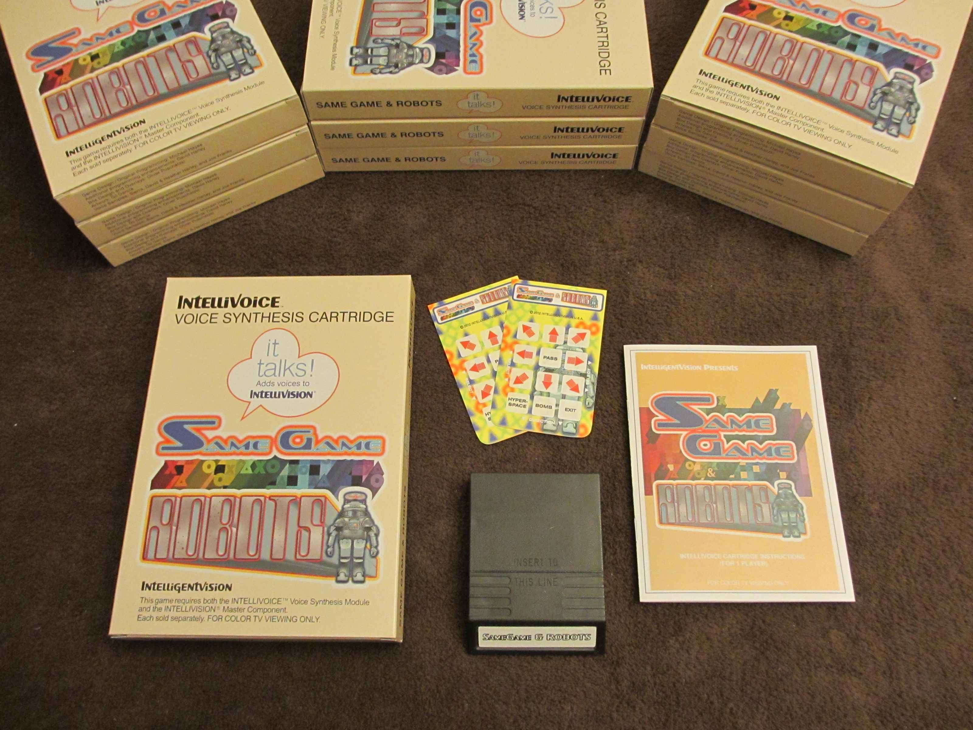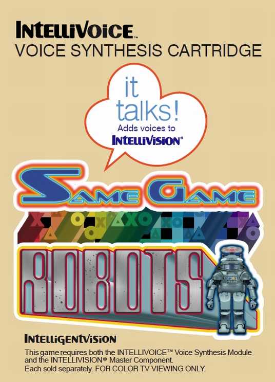 Fast forwarding to 2011, David was asked by Darren, a collector and gamer, to fix/finish FUBAR which is another game by Michael Hayes. Once deep into programming, he only saw fit to revisit SameGame & Robots and to really finish it. Being a big fan of the Intellivoice module, it was only fitting to add human voices to the game. With the 2004 version seeing a very limited release, the updates made to the game, and higher quality production, a 2012 release was believed to be warranted. |